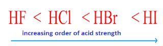 the increasing order of reactivity of halogen acids are , HF < HCl < HBr < HI.